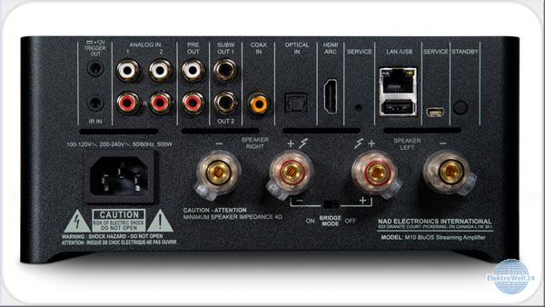Der NAD M10 ist ein innovativer BluOS Streaming-Vollverstärker, der es ermöglicht, über das heimische LAN- oder WLAN-Netzwerk Musik von lokalen Servern und Festplatten, Online-Streamingdiensten oder Internet-Radiosendern wiederzugeben. Die Streaming-Plattform BluOS unterstützt dabei bis zu 64 im Netzwerk angemeldete Player sowie unkomprimierte Datenformate einschließlich der Studio-Master-Qualität MQA.